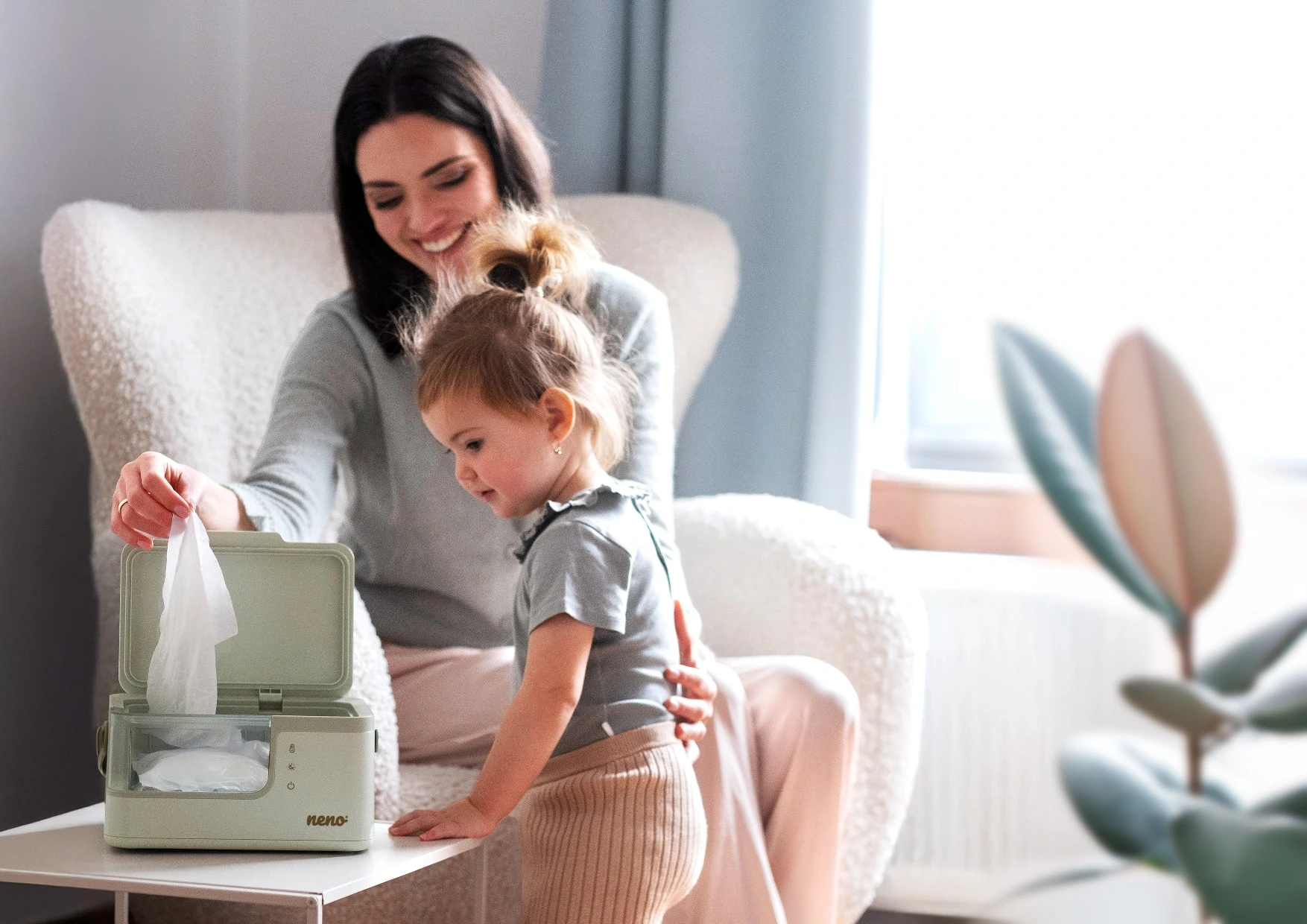 The Neno wipe warmer makes diaper changing a pleasure for your baby. On the panel, you just need to set the level of temperatures safe for baby’s sensitive skin. The device will make it easier for you to wash your baby’s sensitive areas, and your toddler will immediately love the warm, gentle touch of wet wipes.