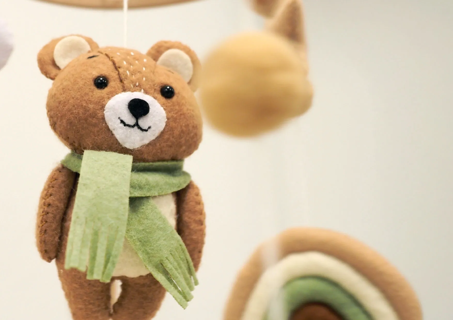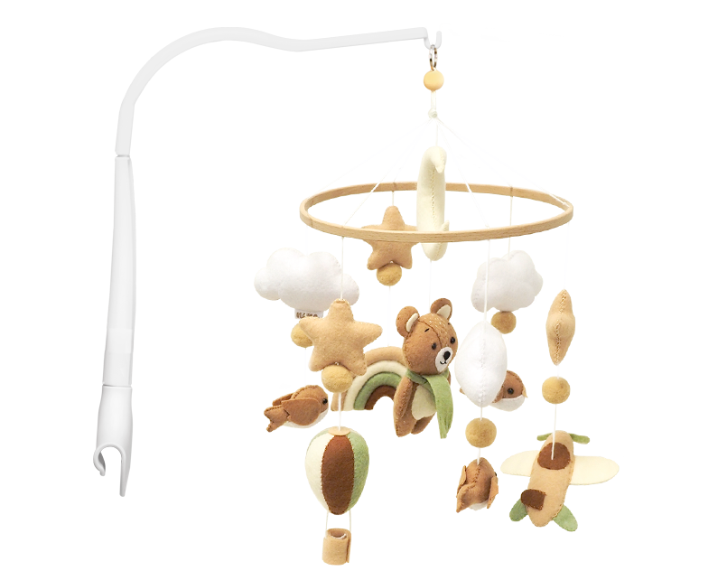 The adorable teddy bears, birds, and stars are hand-sewn from soft felt and filled with plush padding. This makes them look cozy and inviting as they gently sway above the crib, bringing warmth and a touch of childhood magic to your baby’s room.