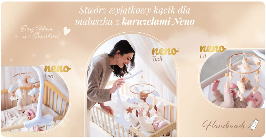 Nie tylko uspokajają, ale również stymulują zmysły dziecka. Przykładem są karuzele takie jak Neno Eli, Neno Leo, Neno Tedi oraz pozytywka Neno Lumia, które pomagają maluszkowi zasnąć, tworząc przyjemną atmosferę.