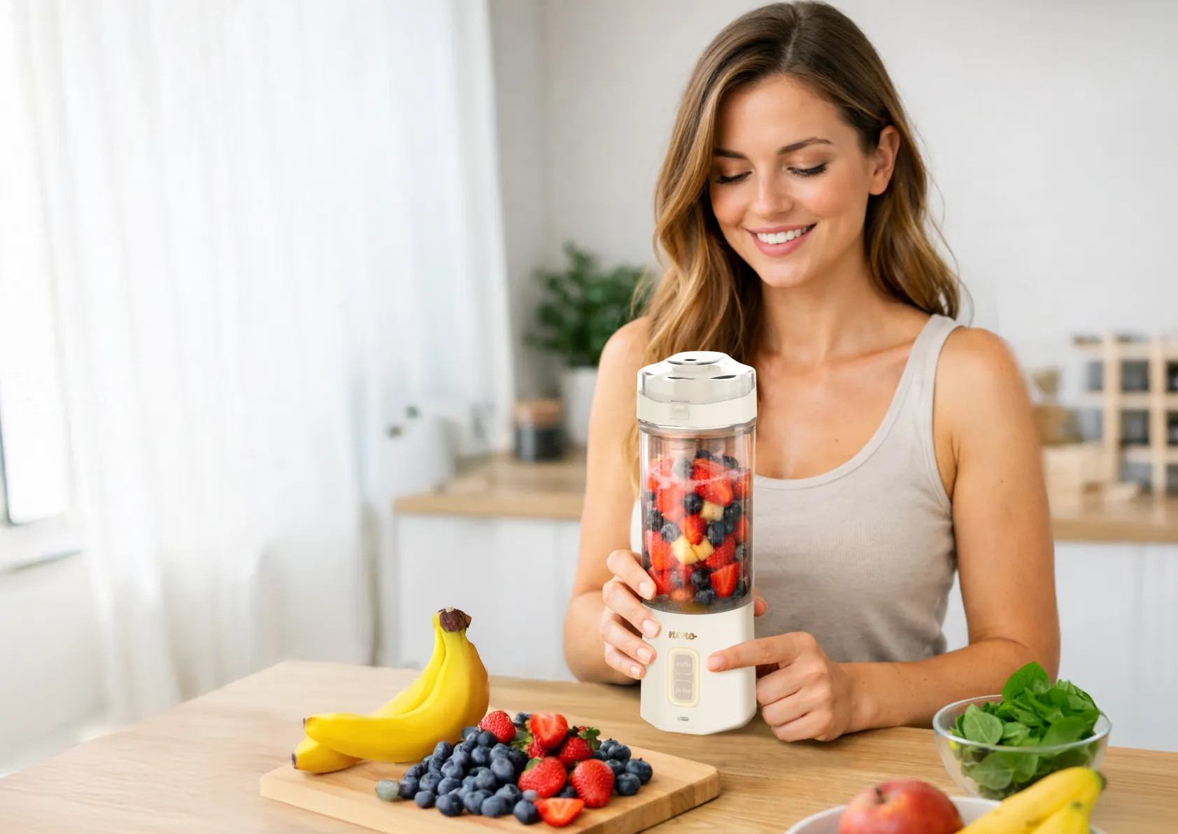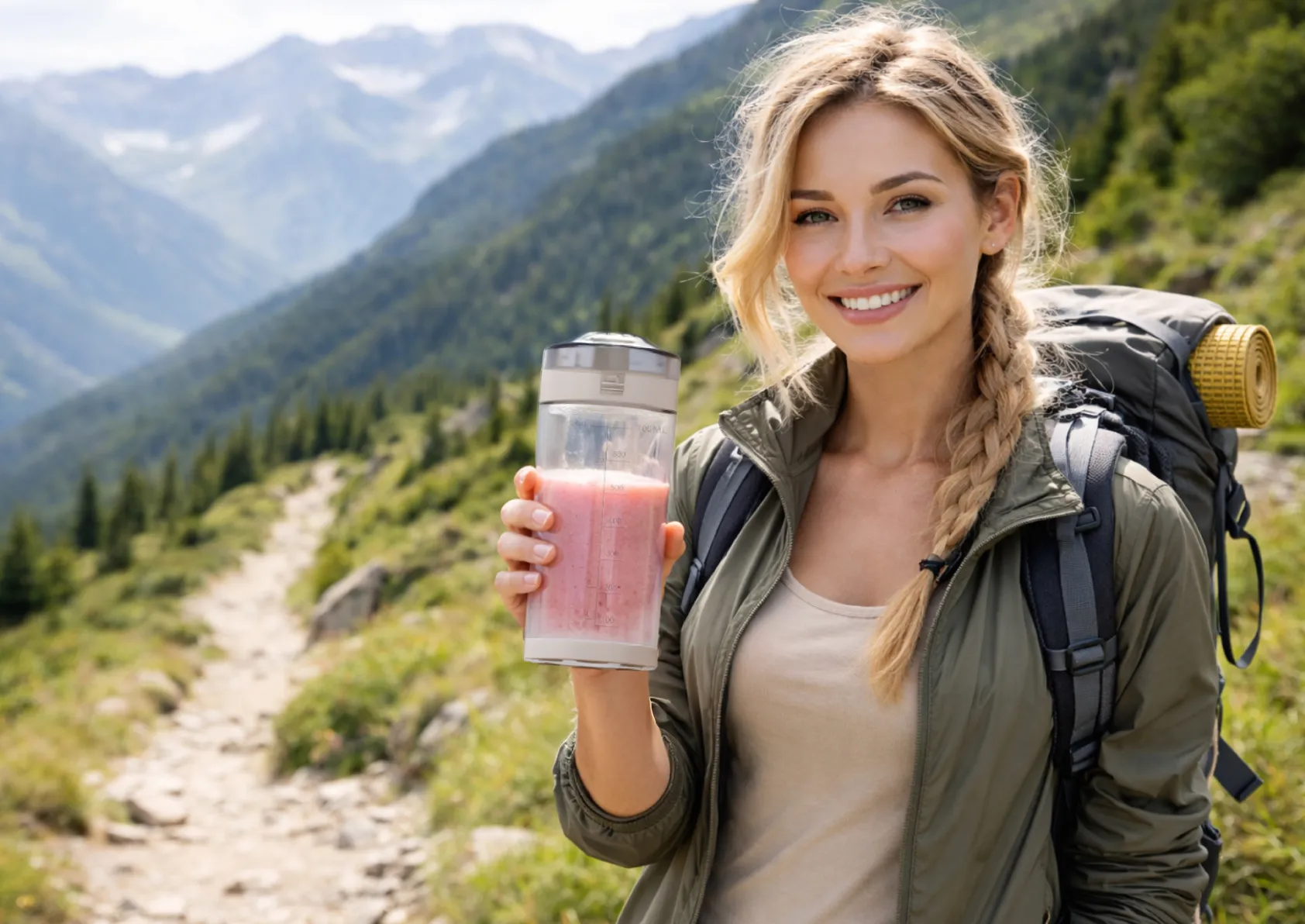 Blender można naładować zarówno przy pomocy klasycznej ładowarki, jak i powerbanka, co daje większą elastyczność w codziennym użytkowaniu.